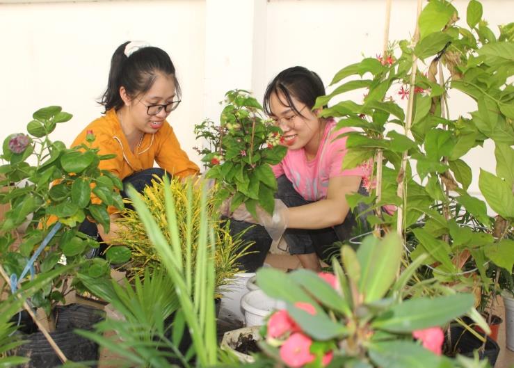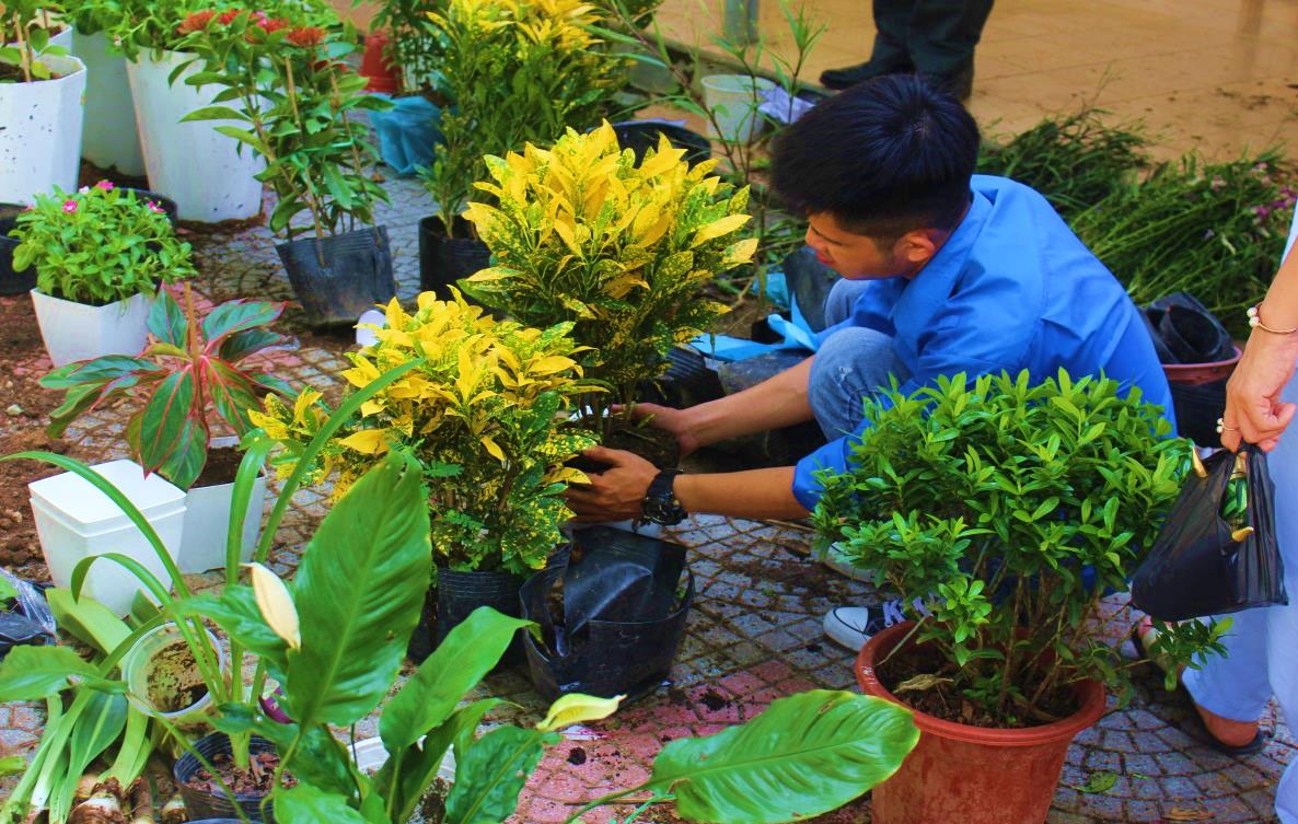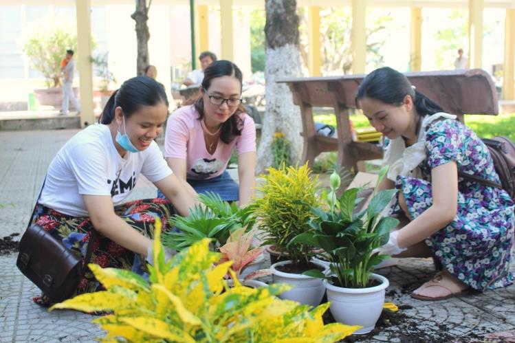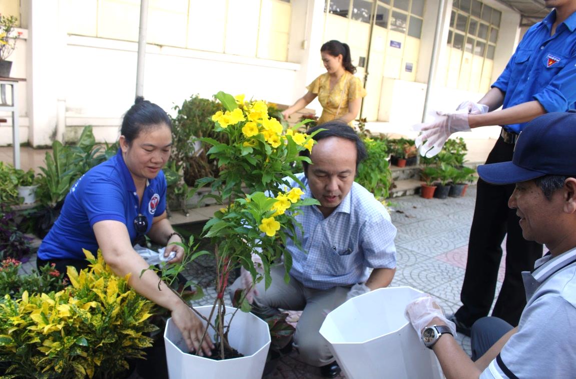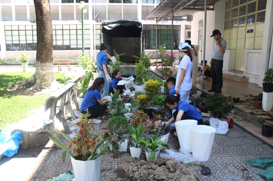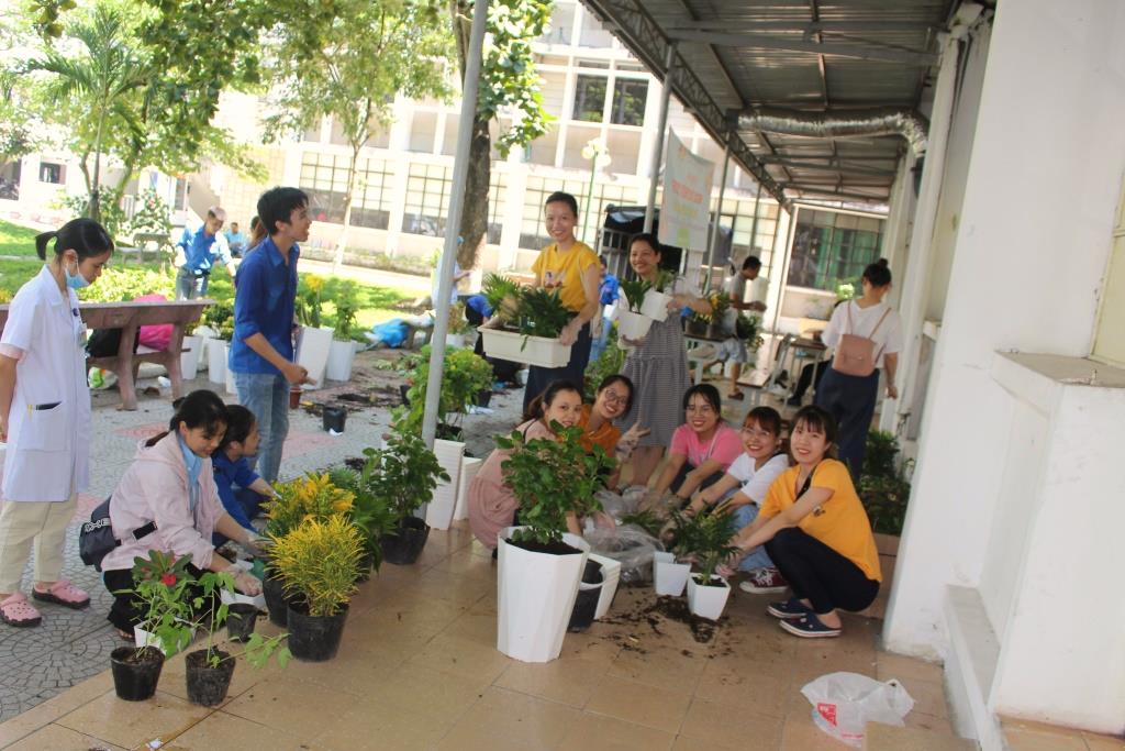 Cùng với toàn thể đoàn viên, Lãnh đạo Nhà trường, Lãnh đạo Bệnh viện, Ban chấp hành Công đoàn CSTV và Ban Chấp hành Liên Chi đoàn đã tiến hành thay mới đất, chậu trồng cây, dán nhãn “Công trình Bệnh viện 4 mùa hoa” và trao tặng chậu cây về các khoa, phòng, đơn vị, bệnh phòng để bố trí tại khu vực phòng khám, phòng chờ, hành lang, cầu thang, phòng làm việc nhằm thuận lợi trong việc chăm sóc, quản lý.
