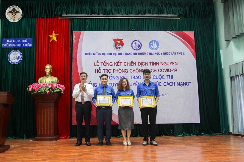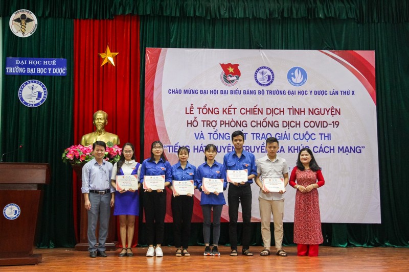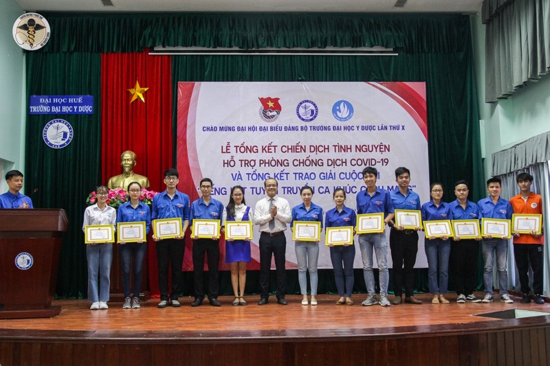 Cùng ngày, tại lễ Tổng kết Chiến dịch tình nguyện Hỗ trợ phòng chống dịch COVID – 19 và Tổng kết trao giải cuộc thi “Tiếng hát tuyên truyền ca khúc Cách mạng” do Đoàn Thanh niên và Hội Sinh viên Trường tổ chức, tập thể Liên chi đoàn Bệnh viện và 11 cá nhân tiêu biểu đã vinh dự nhận được giấy khen của Hiệu trưởng Trường Đại học Y Dược, Đại học Huế trao tặng vì đã có nhiều thành tích xuất sắc trong phong trào hỗ trợ phòng chống dịch COVID-19 vừa qua. Đồng thời, video “Tự nguyện” do các bạn đoàn viên thanh niên Liên Chi đoàn thực hiện đã đạt giải khuyến khích cuộc thi “Tiếng hát tuyên truyền ca khúc Cách mạng”.