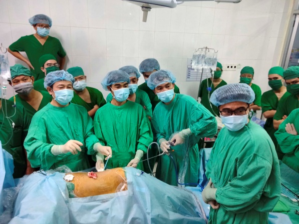 Các bác sĩ bệnh viện Trường ĐH YD Cần Thơ trực tiếp thực hiện phẫu thuật