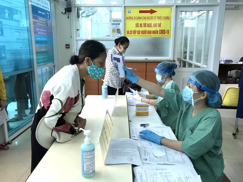 Tổ đón tiếp - phân luồng thực hiện nhiệm vụ kiểm tra, sàng lọc phục vụ người dân đến khám chữa bệnh tại Bệnh viện