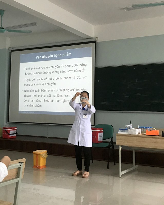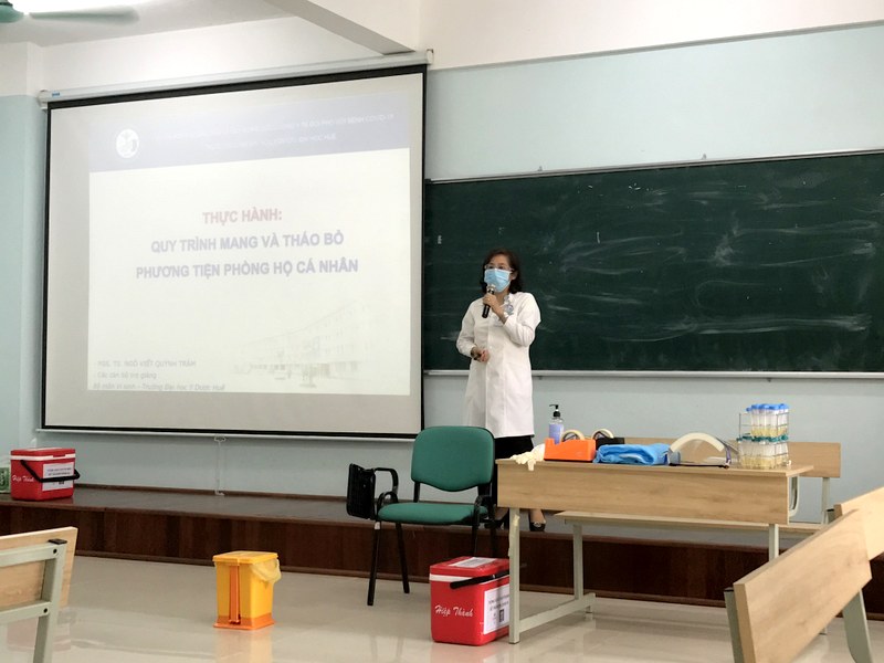 Để chuẩn bị cho kế hoạch triển khai thực hiện xét nghiệm RT-PCR chẩn đoán COVID-19 dự kiến vào cuối tháng 8 năm 2020; Sáng ngày 16/8/2020 Bệnh viện Trường ĐHYD Huế đã khai mạc lớp tập huấn kỹ thuật “Lấy mẫu làm xét nghiệm RT-PCR chẩn đoán COVID-19” cho Điều dưỡng, Hộ sinh, Kỹ thuật viên do PGS.TS. Ngô Viết Quỳnh Trâm - Phó Trưởng Khoa Vi sinh và các Bác sĩ thuộc Bộ môn/Khoa Vi sinh Trường Đại học Y Dược Huế tham gia giảng dạy.