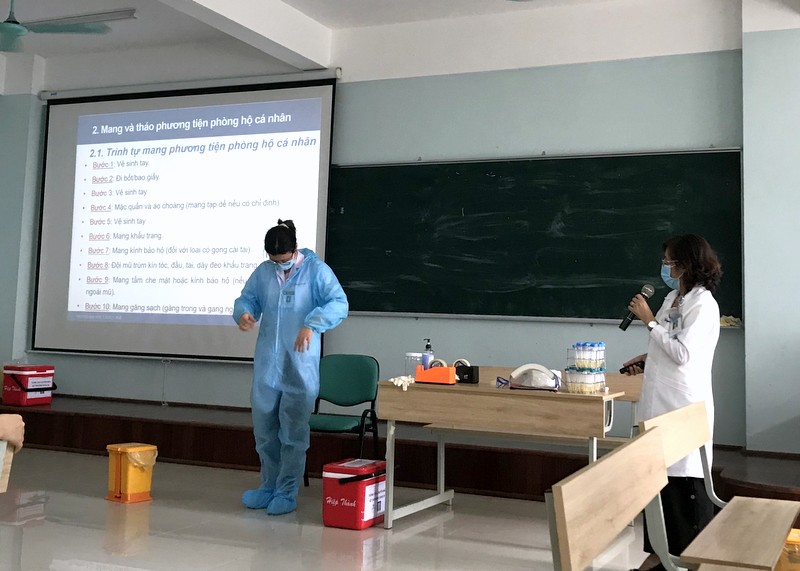 Đối tượng học viên được tập huấn là toàn bộ Điều dưỡng, Hộ sinh, Kỹ thuật viên thuộc các đội phản ứng nhanh phòng chống COVID-19, phòng khám sàng lọc, phòng cách ly tạm thời và các điều dưỡng có kinh nghiệm của Bệnh viện Trường.