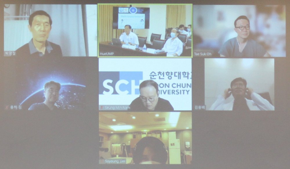 Trước diễn tiến phức tạp của dịch Covid-19 trong thời gian gần đây, Bệnh viện Trường Đại học Y-Dược Huế đã được cộng đồng, người dân, bệnh nhân đánh giá cao những nỗ lực trong việc triển khai thực hiện nhiệm vụ kép, vừa chú trọng công tác khám chữa bệnh phục vụ nhu cầu người dân, vừa tích cực chủ động, nâng cao tinh thần phòng chống dịch Covid-19. Cũng trong mùa dịch, với mô hình là bệnh viện thực hành, Bệnh viện Trường tiếp tục các hoạt động chuyên môn bằng hình thức trực tuyến với các buổi đào tạo CME, hội thảo trực tuyến… cũng như tiếp tục trao đổi chuyên môn với các đối tác lâu năm như Tổ chức Global Care, Hàn Quốc.
