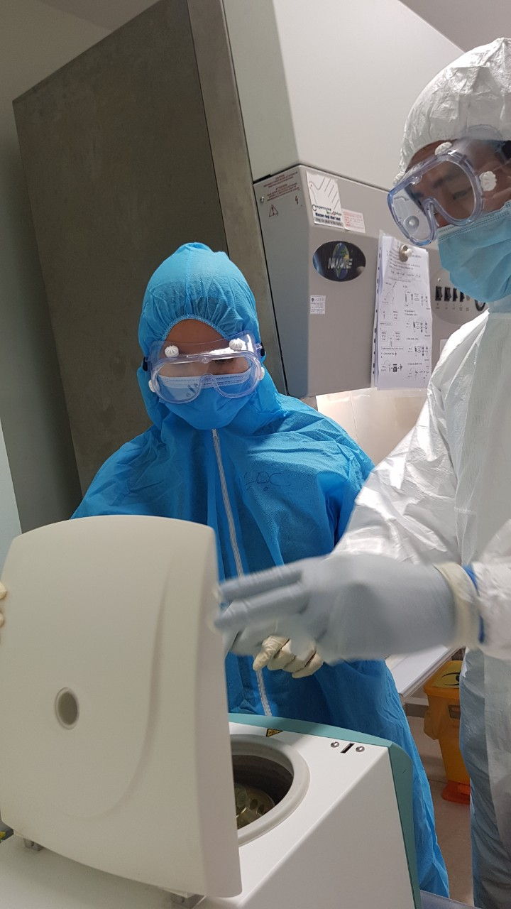 Để đảm bảo an toàn sinh học và chất lượng xét nghiệm PCR, Bệnh viện trường đã mời chuyên gia của Viện Pasteur Nha Trang đến để thẩm định chất lượng một số trang thiết bị như tủ an toàn sinh học, máy quay ly tâm, nồi hấp và các micropipette… Tất cả đều đạt chuẩn, đủ điều kiện để thực hiện kỹ thuật.