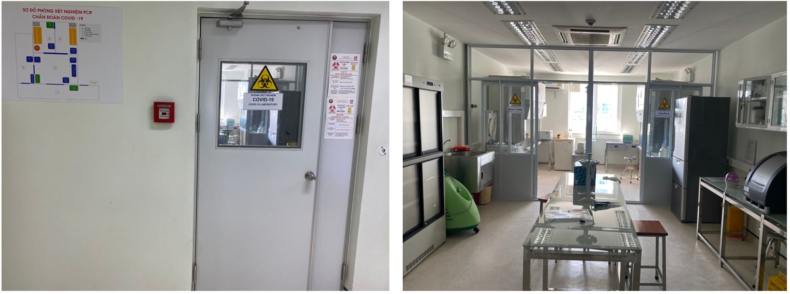 Bệnh viện đã nỗ lực huy động sự hỗ trợ của các Khoa/ Phòng về một số máy móc, trang thiết bị, cơ sở vật chất… để có được Phòng Xét nghiệm PCR chẩn đoán Covid-19 tại Khoa Vi sinh đạt chuẩn gồm: Khu vực nhận mẫu, Phòng xử lý bệnh phẩm, Phòng tách chiết RNA, Phòng máy PCR và phân tích kết quả. Đồng thời, nhân viên kỹ thuật cũng có phòng thay áo quần bảo hộ, phòng tắm đạt chuẩn… sau khi làm xét nghiệm xong.