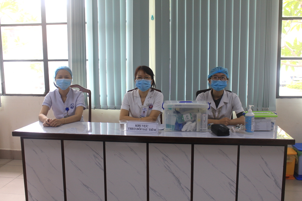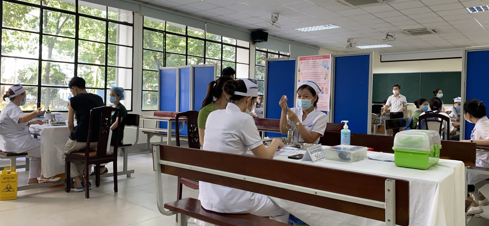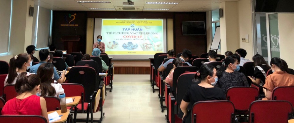 Để đảm bảo có đủ nhân viên y tế phụ trách tiêm chủng cho số lượng người được tiêm tương đối lớn trong đợt này, Bệnh viện Trường Đại học Y-Dược Huế đã phối hợp với Trung tâm Kiểm soát bệnh tật Thừa Thiên Huế tổ chức khóa tập huấn “Tiêm chủng vắc-xin Covid-19” và cấp giấy chứng nhận cho 40 cán bộ y tế của Bệnh viện Trường. Đến thời điểm hiện tại, gần 100 cán bộ y tế của Bệnh viện Trường đã có nghiệp vụ tiêm chủng an toàn. Bệnh viện đã nghiêm túc thực hiện đúng quy trình tiêm chủng của Bộ Y tế bao gồm: tiếp đón, khám sàng lọc tư vấn, tiêm chủng và theo dõi sau tiêm.