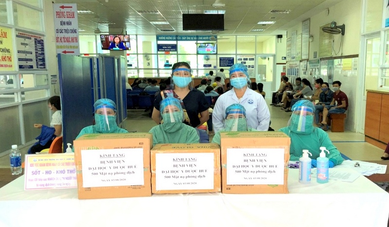 Trong các đợt phòng chống dịch COVID-19 vừa qua, Bệnh viện Trường Đại học Y- Dược Huế thông qua đẩy mạnh công tác xã hội, đã nhận được sự hỗ trợ của nhiều nhà tài trợ cho bệnh nhân và nhân viên y tế, với 1.610 mặt nạ giọt bắn, 11.650 khẩu trang vải, 6.250 khẩu trang Y tế, 01 máy sát khuẩn tay tự động, 02 máy đo nhiệt độ cơ thể không tiếp xúc… và công ty Đại Việt hỗ trợ sản phẩm tảo xoắn trị giá 100.000.000 VND nhằm tăng cường sức khỏe cho cán bộ trong quá trình chống dịch. Các nhà hảo tâm và mạnh thường quân khác cũng đã chung tay cùng nhân viên y tế phòng chống dịch và hỗ trợ bệnh nhân, số tiền hỗ trợ viện phí bệnh nhân lên đến 180.000.000 đồng, các suất cơm, cháo miễn phí trị giá 200.000.000 đồng, ngoài ra còn phần quà tặng cho bệnh nhân trị giá 65.300.000 đồng.