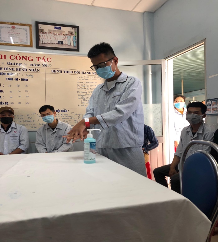 Cụ thể, ở nhiều khoa phòng, Điều dưỡng trưởng đã nhanh chóng chủ động tổ chức hướng dẫn cho bệnh nhân, người nhà bệnh nhân những kiến thức phòng bệnh đơn giản, dễ thực hiện như: rửa tay đúng cách, các thời điểm rửa tay, cách sử dụng khẩu trang đúng, cách che miệng khi ho/hắt xì, khi nào thì sử dụng khẩu trang y tế, khi nào thì chỉ cần sử dụng khẩu trang vải, cần ăn uống như thế nào để phòng nhiễm virus…