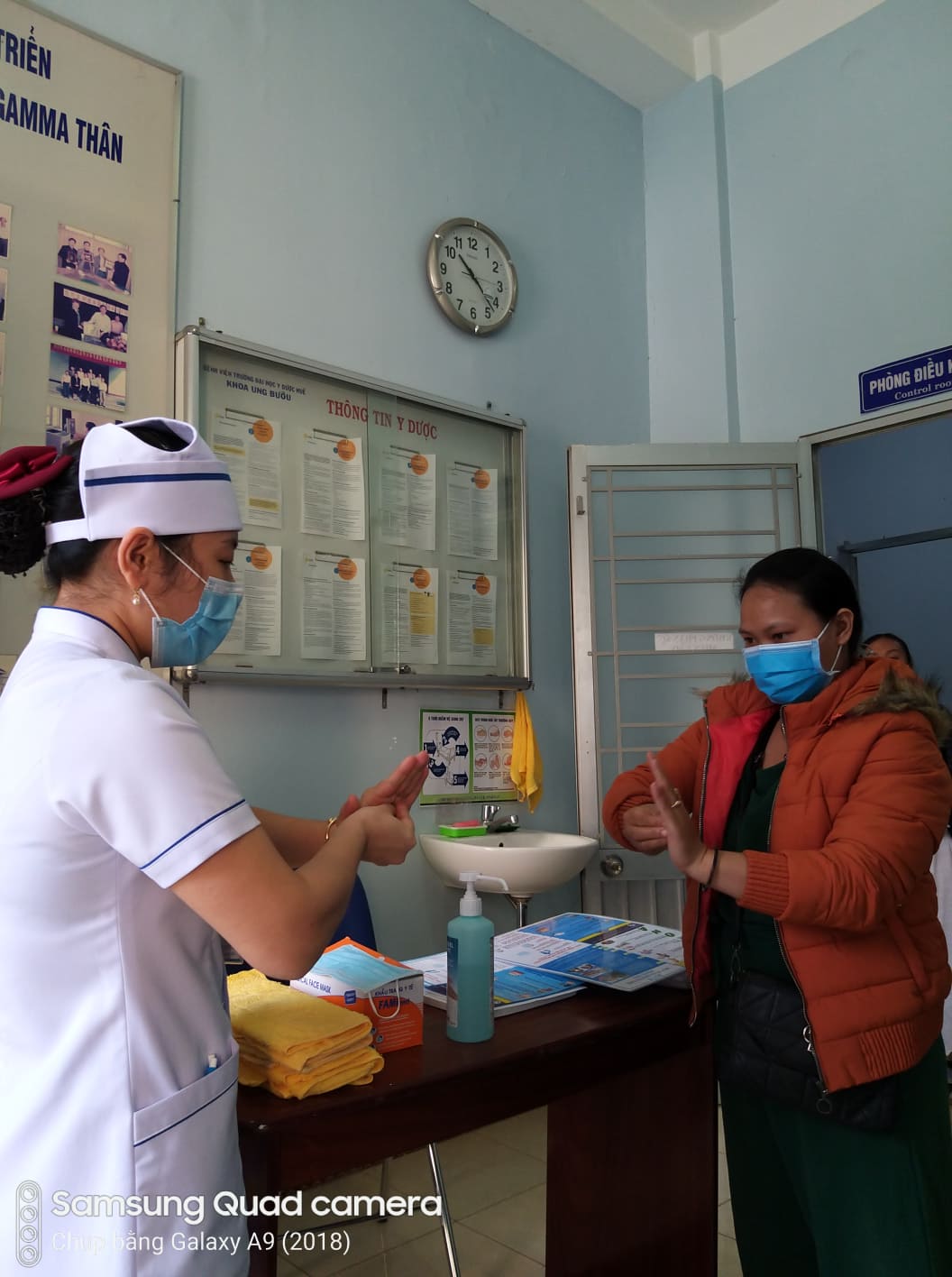 ĐD Khoa TMH-M-RHM hướng cho bệnh nhân cách rửa tay, mang khẩu trang, che miệng khi ho/hắt hơi