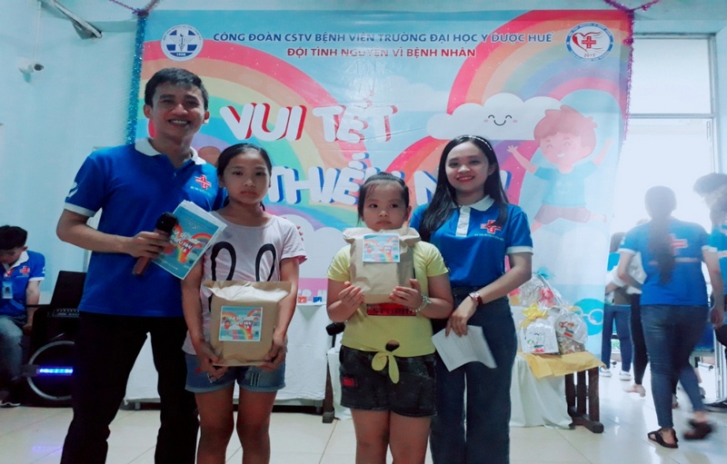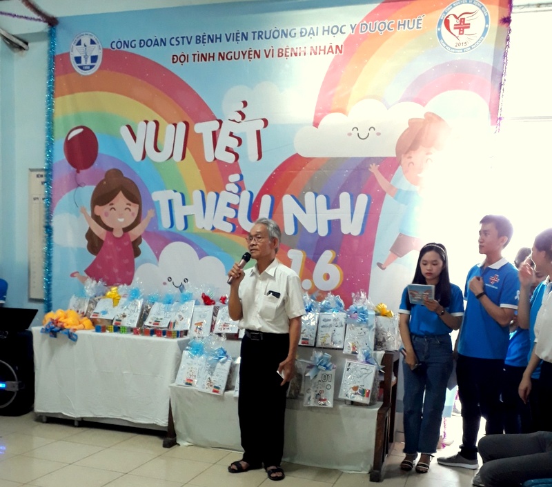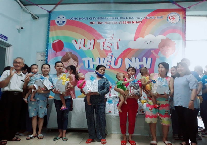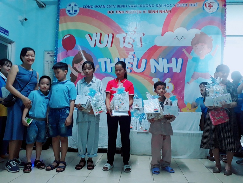 Mỗi trẻ thơ được sinh ra là niềm vui, niềm hi vọng lớn lao của các bậc cha mẹ, là nguồn nhân lực vàng, chủ nhân tương lai của đất nước. Nhân dịp ngày Quốc tế thiếu nhi 01.06.2020, với mong muốn mang đến những niềm vui, những món quà tinh thần dành cho các em bệnh nhân nhi đang điều trị tại Bệnh viện Trường Đại học Y - Dược Huế, ngày 31.5.2020, Công đoàn CSTV Bệnh viện phối hợp với Tổ công tác xã hội, Đội tình nguyện vì bệnh nhân tổ chức chương trình “VUI TẾT THIẾU NHI 2020” với sự có mặt của quý vị khách mời, các nhà mạnh thường quân, các bạn tình nguyện viên của Câu lạc bộ, đặc biệt là sự có mặt của gần 70 bệnh nhân nhi và bố mẹ. Chương trình đã trao tặng cho các em những phần quà nhằm động viên các em, khích lệ các em, mang lại niềm vui động viên các em nhanh chóng lành bệnh để trở về với gia đình và trường học.
