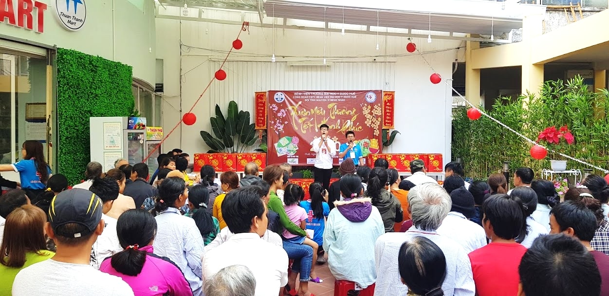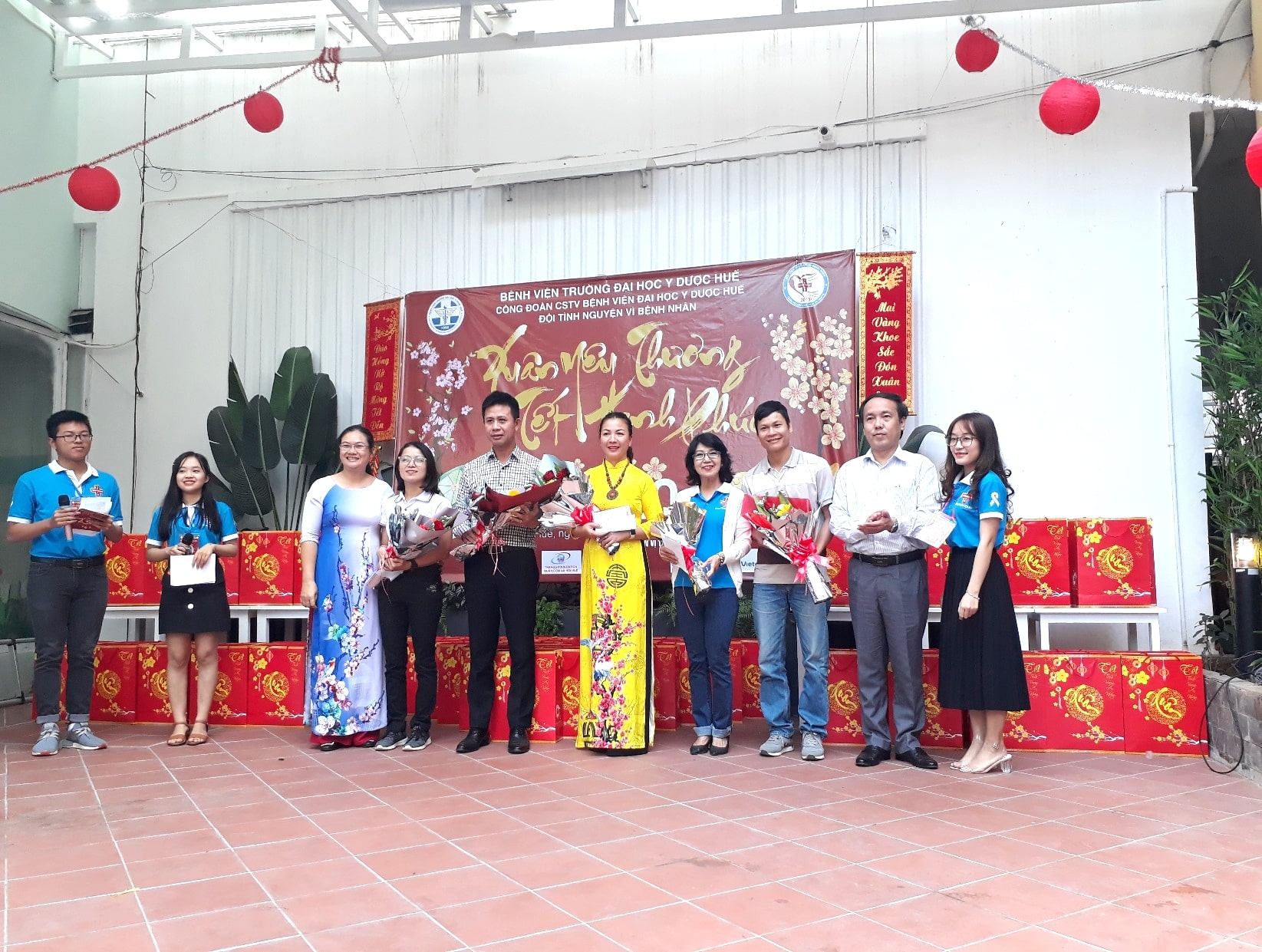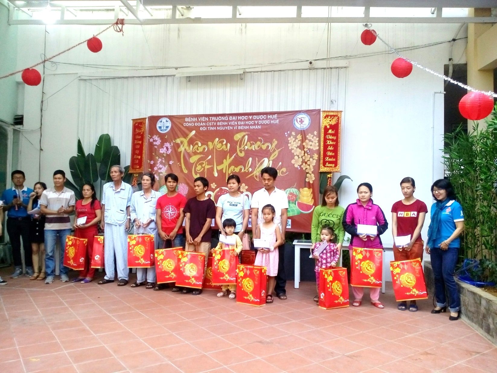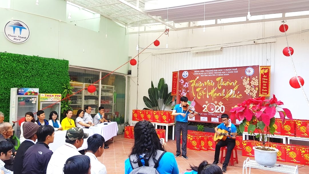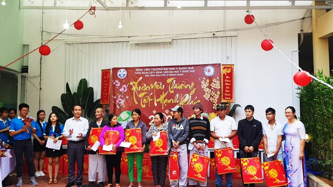Trong không khí vui tươi, đầm ấm của những ngày đầu năm mới 2020, chuẩn bị đón Tết cổ truyền dân tộc, vào sáng ngày 17.01.2020, Công đoàn CSTV Bệnh viện, Tổ Công tác xã hội Bệnh viện phối hợp với Đội tình nguyện vì bệnh nhân tổ chức Chương trình “Xuân yêu thương, Tết hạnh phúc”. Chương trình được bảo trợ bởi Trung tâm Tình nguyện quốc gia, sự tài trợ đến từ Trangs Foundation - Quán cơm xã hội Huế, Ngân hàng TMCP Ngoại thươngViệt Nam (Vietcombank) chi nhánh Huế, Ngân hàng TMCP Đầu tư và Phát triển Việt Nam (BIDV), và Hợp tác xã TMDV Thuận Thành.