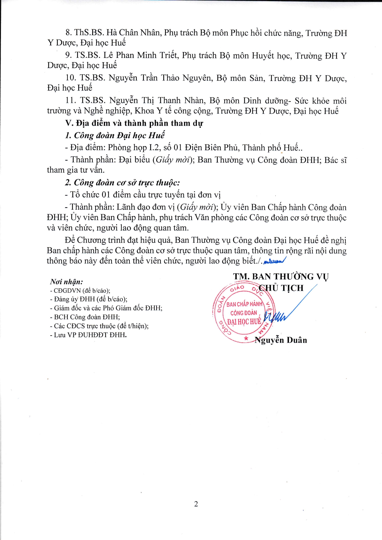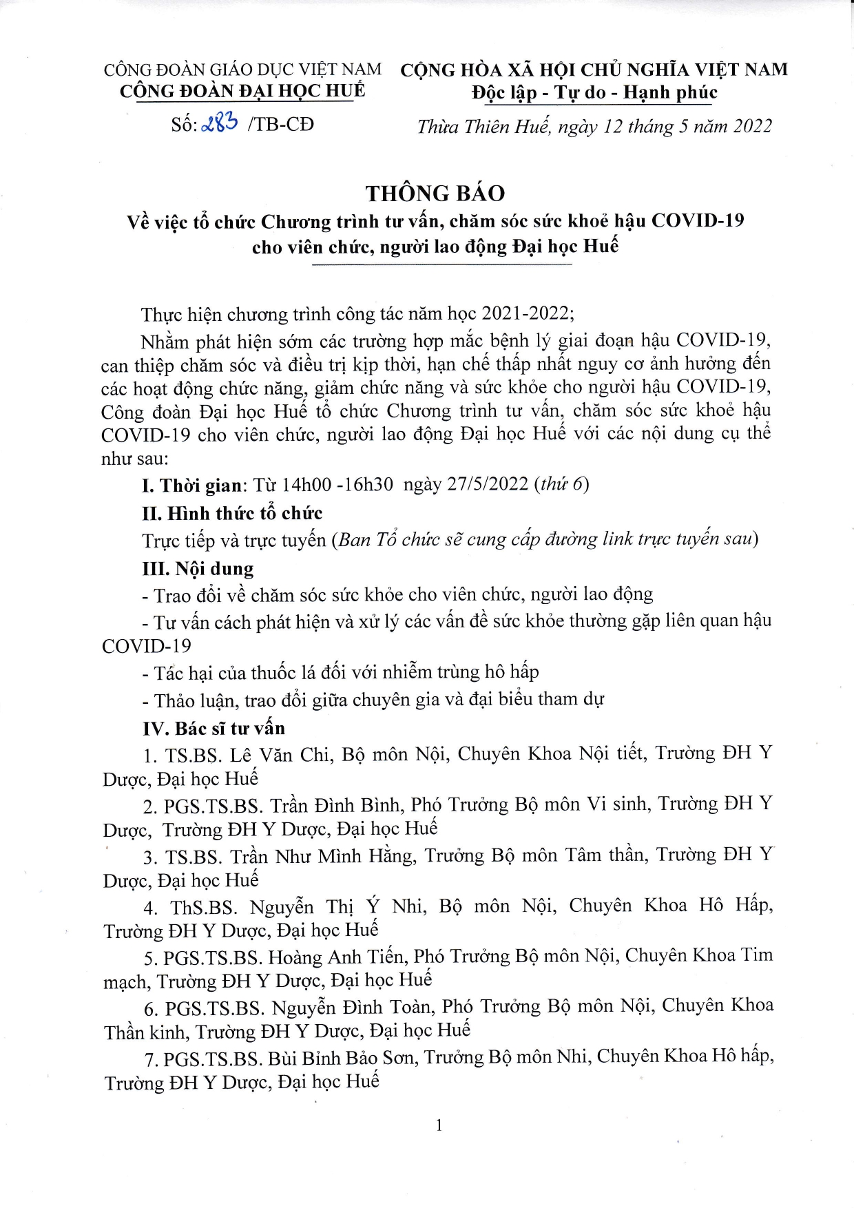 Chương trình tư vấn, chăm sóc sức khỏe hậu COVID-19 cho viên chức, người lao động Đại học Huế