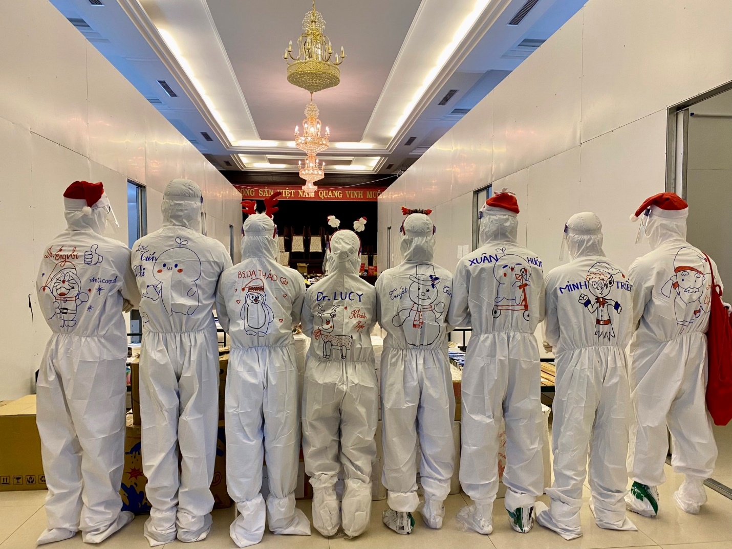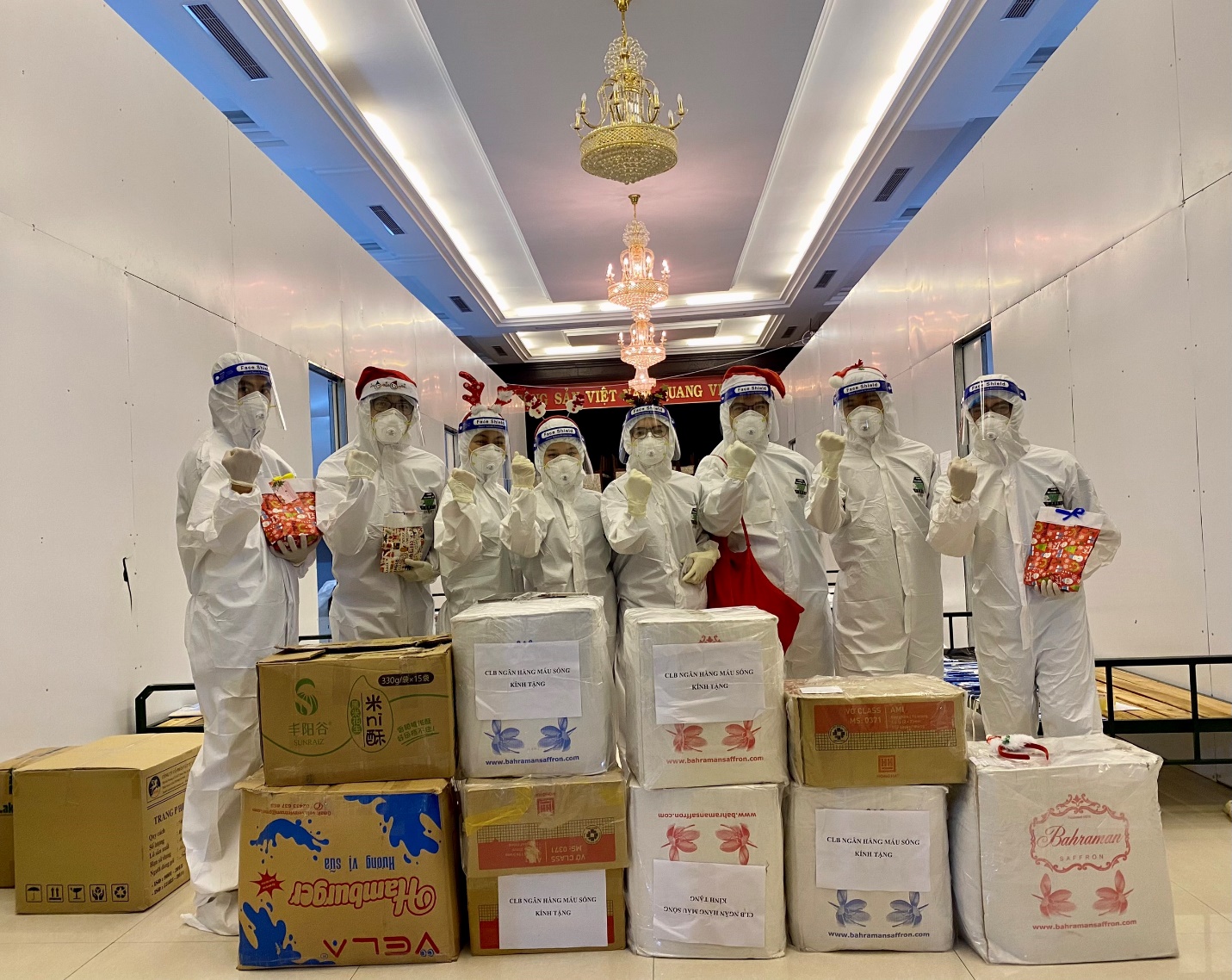 Nhằm góp phần động viên, chia sẻ và trao gửi những lời yêu thương sâu sắc với các em nhỏ, để các em không cô đơn và đón chào một mùa Giáng sinh ấm áp như bao trẻ em cùng trang lứa, đoàn công tác S7 Bệnh viện Trường Đại học Y Dược Huế do Ths. BS Nguyễn Gia Bình trưởng đoàn đã phối hợp cùng CLB Ngân hàng máu sống, Trường Đại học Y Dược - Đại học Huế chung tay tạo nên đêm Giáng sinh ý nghĩa. Các chiến sĩ áo trắng cùng các bạn thành viên CLB Ngân hàng máu sống đã góp công sức và thời gian chuẩn bị những gói quà với mong muốn mang lại niềm vui cho các em nhỏ không may mắn nhiễm COVID-19 trong dịp Giáng sinh này.