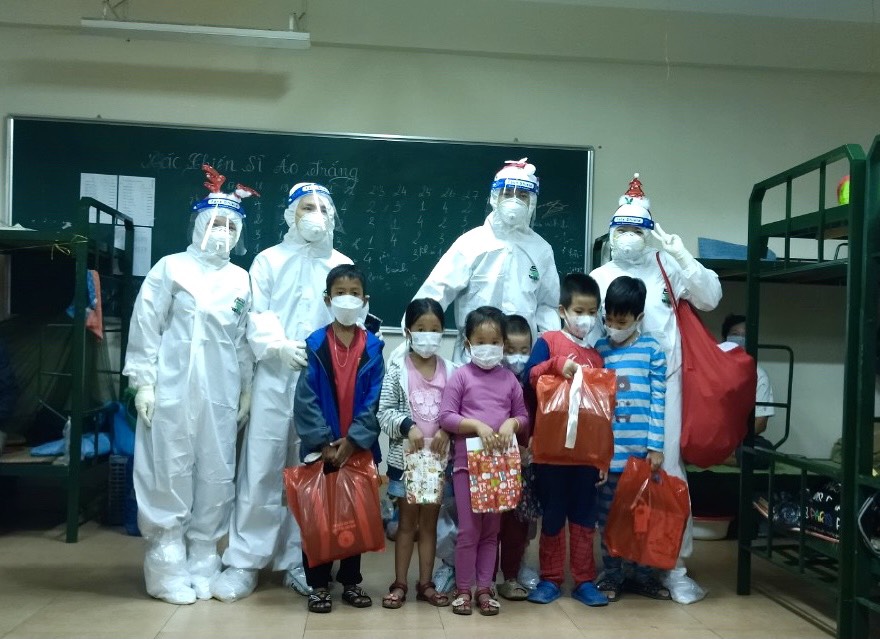 Khi những cơn rét lạnh cuối đông tràn về, những cành cây khô khẳng khiu lá rụng cùng những cơn mưa phùn phảng phất cũng là lúc chào đón mùa Giáng Sinh đang về. Nếu bao trẻ em đang trong chăn ấm nệm êm, háo hức đón chờ những món quà từ ông bà, cha mẹ thì những đứa trẻ ở khu dã chiến lại chưa được may mắn như thế, các em hiện đang phải điều trị COVID-19 tại khu thu dung T2F0 trường Cao Đẳng nghề số 23 Thừa Thiên Huế.