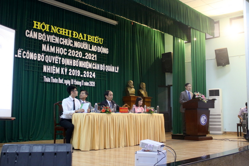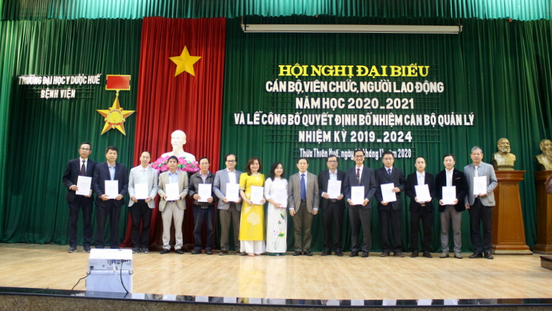 Chiều ngày 10/11, tại hội trường A, Bệnh viện Trường Đại học Y Dược Huế đã tổ chức hội nghị cán bộ, viên chức, người lao động năm học 2020-2021 và Lễ công bố quyết định bổ nhiệm cán bộ quản lý nhiệm kỳ 2020-2024