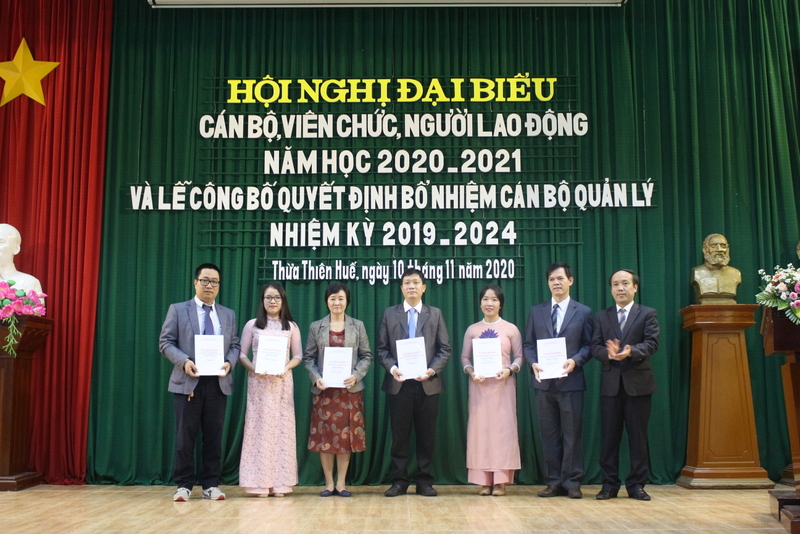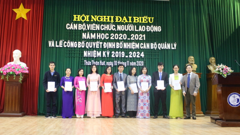 Tiếp sau Hội nghị cán bộ, viên chức, người lao động là Lễ công bố quyết định bổ nhiệm cán bộ quản lý nhiệm kỳ 2019-2024. Tại đây, Ban lãnh đạo đại diện trao tặng các quyết định bổ nhiệm cán bộ quản lý nhiệm kỳ 2019-2024 cho các Trưởng, Phó Khoa, Phòng, Trung tâm, Đơn vị.