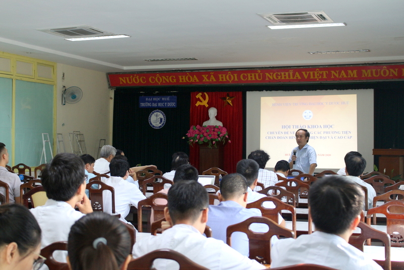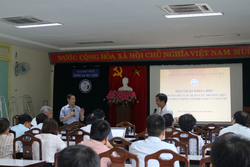 Chiều 10/06, Bệnh viện Trường Đại học Y Dược Huế tổ chức buổi hội thảo khoa học chuyên đề về sử dụng hợp lý các phương tiện chẩn đoán hình ảnh hiện đại và cao cấp. Thành phần tham dự hội thảo gồm có Ban Giám đốc Bệnh viện, Ban chủ nhiệm và bác sĩ các khoa Chẩn đoán hình ảnh, Ngoại Tiêu hóa, Trung tâm cấp cứu - đột quỵ, các khoa lâm sàng và các phòng chức năng có liên quan.