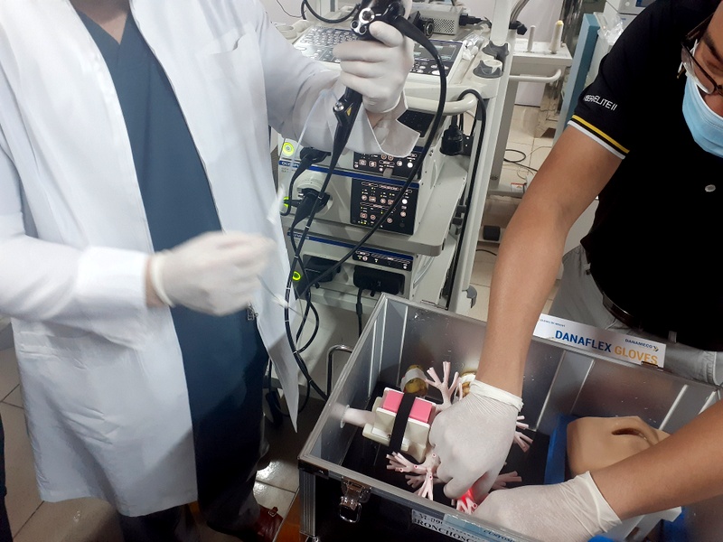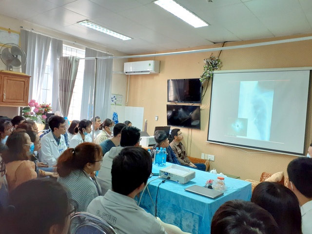 Buổi hội thảo bắt đầu với bài báo cáo tổng quan về nội soi phế quản siêu âm và ứng dụng thực tiễn của TBNA (transbronchial needle aspiration: chọc hút kim nhỏ xuyên thành phế quản (sinh thiết u/hạch ở trung thất)) và TBLB (transbronchial lung biopsy: sinh thiết phổi xuyên thành phế quản (sinh thiết u ở ngoại vi)). Tiếp đó, hội thảo viên được tham gia buổi thực hành TBNA, TBLB trên mô hình phế quản bằng silicon và thao tác thực cho 4 bệnh nhân tại khoa ung bướu (2 ca sinh thiết hạch trung thất, hạch rốn phổi bằng nội soi phế quản siêu âm; 2 ca sinh thiết u ngoại vi có hỗ trợ màng tăng sáng truyền hình).