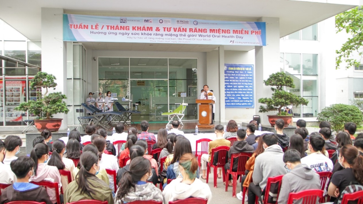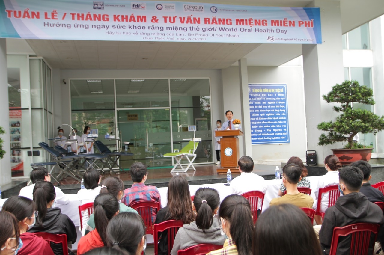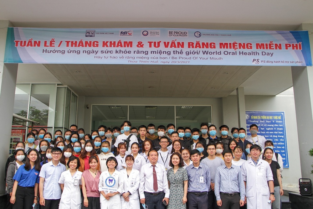 Từ ngày 17-24/3/2021, dưới sự chỉ đạo của Ban giám hiệu Trường Đại học Y Dược Huế, Khoa RHM đã tổ chức tuần lễ hưởng ứng ngày hội sức khoẻ răng miệng thế giới. Đến dự lễ khai mạc có PGS.TS Lê Đình Khánh, Phó Giám Đốc Bệnh viện trường ĐH Y Dược Huế, thay mặt Đảng ủy, BGH, Bệnh viện phát biểu khai mạc. Tuần lễ khám và tư vấn đã diễn ra thành công tốt đẹp với sự tham gia của các sinh viên, học viên và giảng viên đang học tập và làm việc tại Khoa Răng Hàm Mặt Trường Y Dược Huế. Đoàn đã thăm khám và tư vấn miễn phí cho tổng cộng 526 trường hợp, trong đó có 522 sinh viên, 2 học viên, 2 cán bộ công nhân viên của Trường Y Dược Huế.