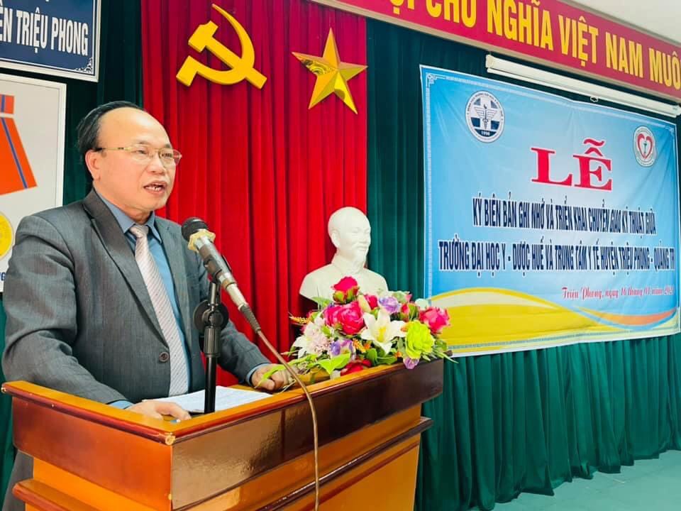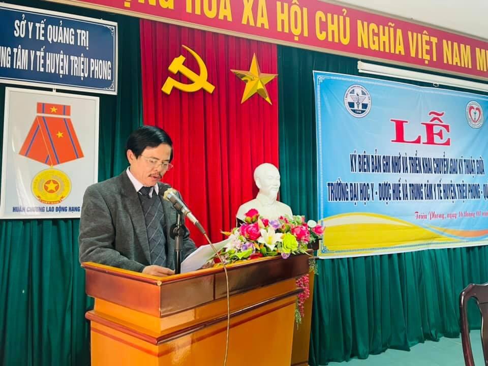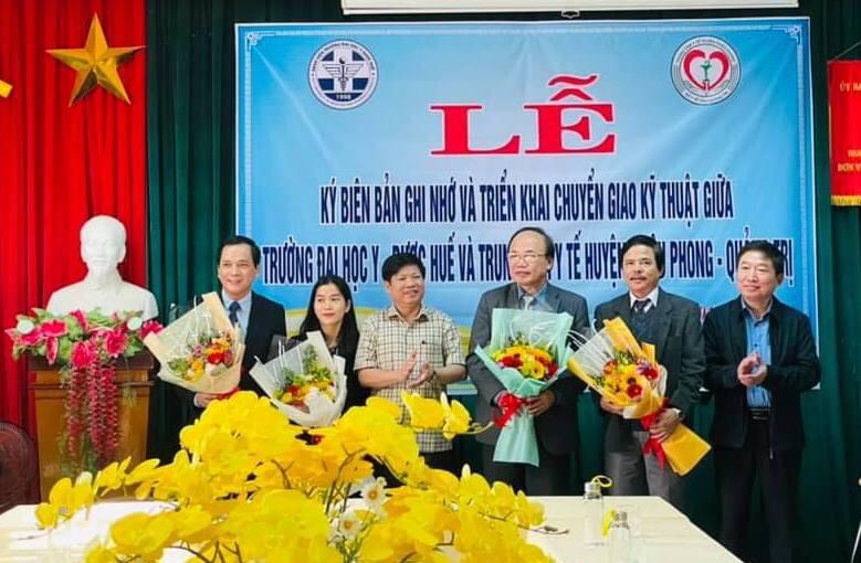 PGS.TS. Đoàn Phước Thuộc – Phó Giám đốc Bệnh viện Trường đã thay mặt cho Bệnh viện Trường Đại học Y-Dược Huế tiến hành ký kết biên bản ghi nhớ hợp tác với Trung tâm Y tế huyện Triệu Phong do BSCKII. Võ Thanh Tâm – Giám đốc Trung tâm Y tế đại diện. Theo đó, Bệnh viện đồng ý nhận đào tạo, chuyển giao kỹ thuật, tư vấn, hỗ trợ về mặt chuyên môn trên lĩnh vực Tai mũi họng, Răng hàm mặt… cho Trung tâm Y tế. Bệnh viện sẽ thực hiện đào tạo nâng cao kiến thức, năng lực chuyên môn cho các y bác sĩ của Trung tâm thông qua hình thức đào tạo cầm tay chỉ việc, đào tạo ngắn hạn cấp chứng chỉ, chứng nhận và đào tạo tại chỗ.