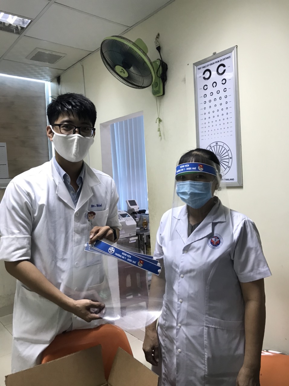 Được sự chỉ đạo của Ban Giám đốc Bệnh viện, Ban chấp hành Liên chi đoàn Bệnh viện đã triển khai đợt ra quân làm kính chắn phòng hộ cho cán bộ y tế tại Bệnh viện, đặc biệt là cán bộ làm công tác chuyên môn trực tiếp tiếp xúc với người bệnh. Để ứng phó lâu dài với dịch, Liên chi đoàn cũng đã huy động sức mạnh của toàn thể đoàn viên thanh niên quyết tâm hoàn thành tổng cộng 700 tấm kính chắn giọt bắn nhằm đảm bảo cơ số cần thiết cho công tác phòng chống dịch trong thời gian 10 ngày. Trong ba tuần vừa qua, đại diện Liên chi đoàn Bệnh viện đã trực tiếp trao tặng hơn 500 tấm kính chắn cho các anh chị em phòng khám, phòng tài chính kế toán. Sau đó, Liên chi đoàn cũng đã nhanh chóng trao tặng đến cán bộ tại các Phòng khám, Trung tâm cấp cứu và đột quỵ, Khoa Xét nghiệm, bộ phận phân luồng, khám sàng lọc và các Khoa phòng, Trung tâm, Đơn vị tại Bệnh viên.