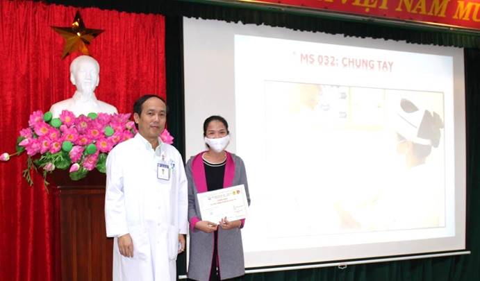 - 05 Giải khuyến khích: Tác phẩm “Trao yêu thương” - Khoa Nội Tim mạch; Tác phẩm “Chung tay” - Khoa Nội Tổng hợp – Nội tiết; Tác phẩm “Giáo dục truyền thông” - Khoa Ngoại CTCH-LN; Tác phẩm “Tuyến đầu” - Tổ Công tác xã hội và Tác phẩm “Chung tay” - Khoa Ngoại Tiết niệu – Thần kinh.