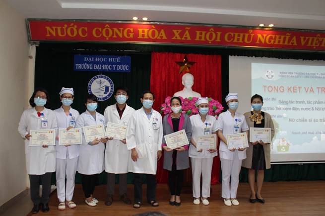 Chiều ngày 26/4/2020, buổi Tổng kết, trao giải Cuộc thi ảnh “Nữ chiến sĩ áo trắng” và trao giấy chứng nhận Cuộc thi “Sáng tác Tranh, tác phẩm cổ động cho phong trào tiết kiệm điện nước và nói không với rác thải nhựa” cho các đơn vị đạt giải. Đến tham dự, có PGS.TS. Nguyễn Khoa Hùng – Bí thư ĐUBP, Giám đốc Bệnh viện; PGS.TS. Lê Đình Khánh – Phó Giám đốc Bệnh viện; Đ/c Hoàng Thị Ngọc Hà - Đảng ủy viên ĐUBP, Chủ tịch Công đoàn CSTV Bệnh viện; Đ/c Nguyễn Gia Bình – UVBTV Đoàn TNCS Hồ Chí Minh, Bí thư Liên Chi đoàn Bệnh viện; Quý thầy cô Ban chủ nhiệm các khoa, phòng, đơn vị, trung tâm toàn Bệnh viện; đại diện các đội thi và các đồng chí trong BCH Công đoàn, Liên Chi đoàn Bệnh viện Trường.