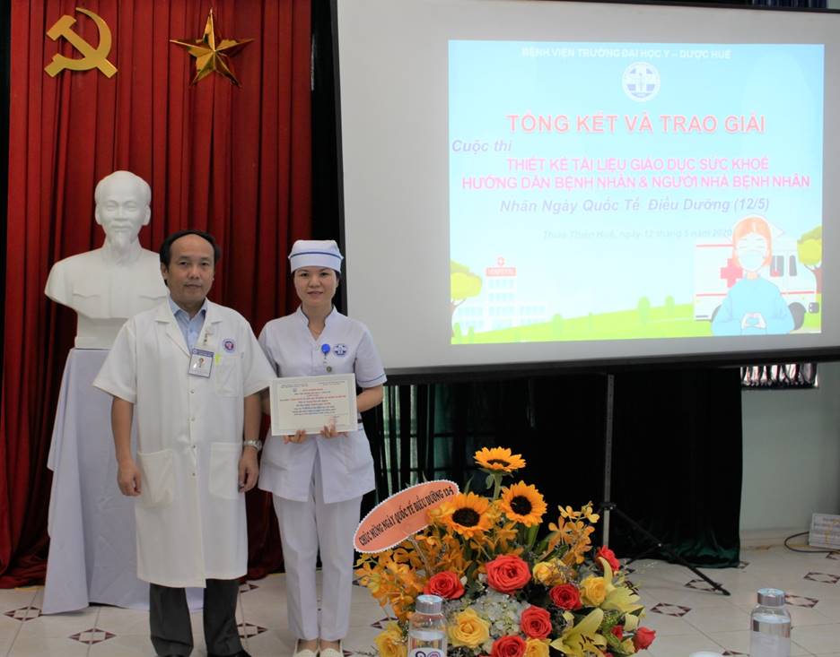 Đến dự với Buổi tổng kết và trao giải, PGS.TS Nguyễn Khoa Hùng - Giám đốc Bệnh viện, đã có lẵng hoa tươi thắm chúc mừng toàn thể Điều dưỡng, Hộ sinh, Kỹ thuật viên đang công tác tại Bệnh viện Trường Đại học Y Dược Huế với mong muốn đội ngũ Điều dưỡng, Hộ sinh, Kỹ thuật viên ngày càng vững mạnh để tiếp tục thực hiện nhiệm vụ cao quý trong chăm sóc người bệnh, góp phần nâng cao sự hài lòng của người bệnh khi đến khám và điều trị tại Bệnh viện.