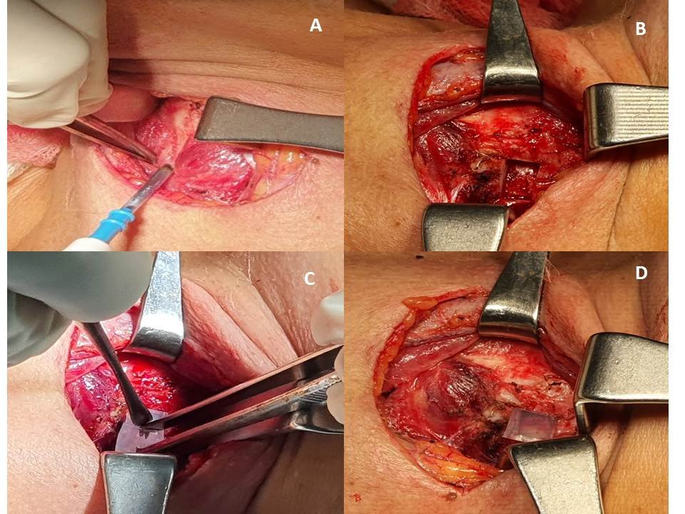 Phương pháp chỉnh hình này được thực hiện bằng cách tạo một cửa sổ kích thước 5 x 10mm ở sụn giáp phía bên bệnh (Hình 1A, 1B). Vị trí được chọn để mở cửa sổ thay đổi tùy thuộc vào giới tính của bệnh nhân, độ gập góc của sụn giáp và kinh nghiệm của phẫu thuật viên. Tiếp theo đó, vật liệu ghép được chọn và cắt gọt từ một khối silastic của hãng Medtronic Xomed (theo hình dạng và kích thước mà phẫu thuật đã định hình) (Hình 2), đặt vào vị trí cửa sổ được chọn trước đó, với mục đích đẩy dây thanh bị liệt vào vị trí đường giữa (Hình 1C, 1 D). Vị trí chính xác của nếp dây thanh là chìa khóa cuối cùng dẫn đến thành công của bất kỳ phẫu thuật chỉnh hình sụn giáp nào, nếu đặt sai vị trí sẽ hoàn toàn thất bại. Phẫu thuật viên cần có khả năng đưa ra các quyết định và điều chỉnh trong quá trình phẫu thuật.