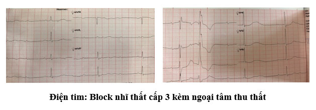 Chẩn đoán: Block nhĩ thất cấp 3/Tăng huyết áp nguy cơ cao/Hẹp vừa van động mạch chủ, hở vừa van 2 lá