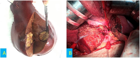 Hình 2. Hình ảnh trong mổ cắt gan phân thùy sau.