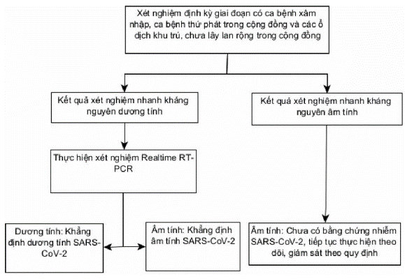 Việc lựa chọn xét nghiệm nhanh xác định kháng nguyên SARS-CoV-2 là giải pháp tối ưu hiện nay để nhanh chóng chặn đứng sự lây lan của COVID-19, dùng kết quả xét nghiệm nhanh xác định kháng nguyên SARS-CoV-2 để sàng lọc ngay ban đầu theo hướng dẫn của Bộ Y tế trong Quyết định số 2022/QĐ-BYT ngày 28 tháng 4 năm 2021 “Hướng dẫn sử dụng sinh phẩm xét nghiệm nhanh kháng nguyên vi rút SARS-CoV-2”, từ đó, đưa ra các phương thức khác nhau để ứng phó.