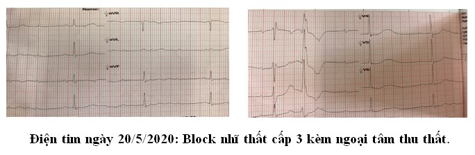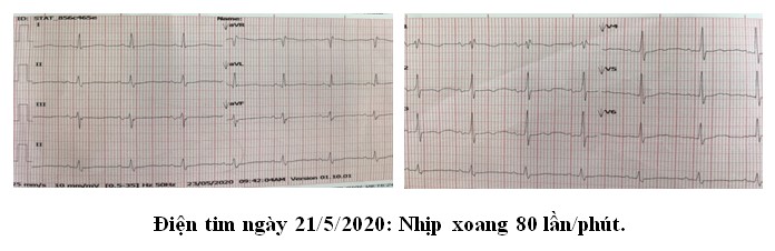 Tuy nhiên, sáng ngày 21/5, khám lâm sàng thấy mạch 80 lần/phút, bệnh nhân cảm thấy khỏe, đo ECG kiểm tra thấy nhịp tim hồi phục.