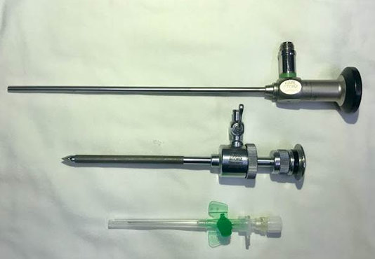 Ảnh 1: Dụng cụ phẫu thuật: Ống soi 4.7mm, trocart 5mm, catheter 18Fr